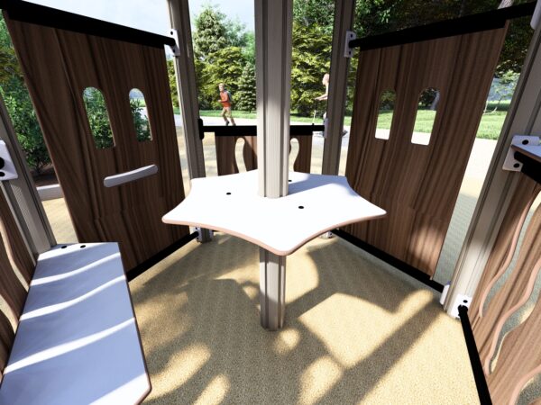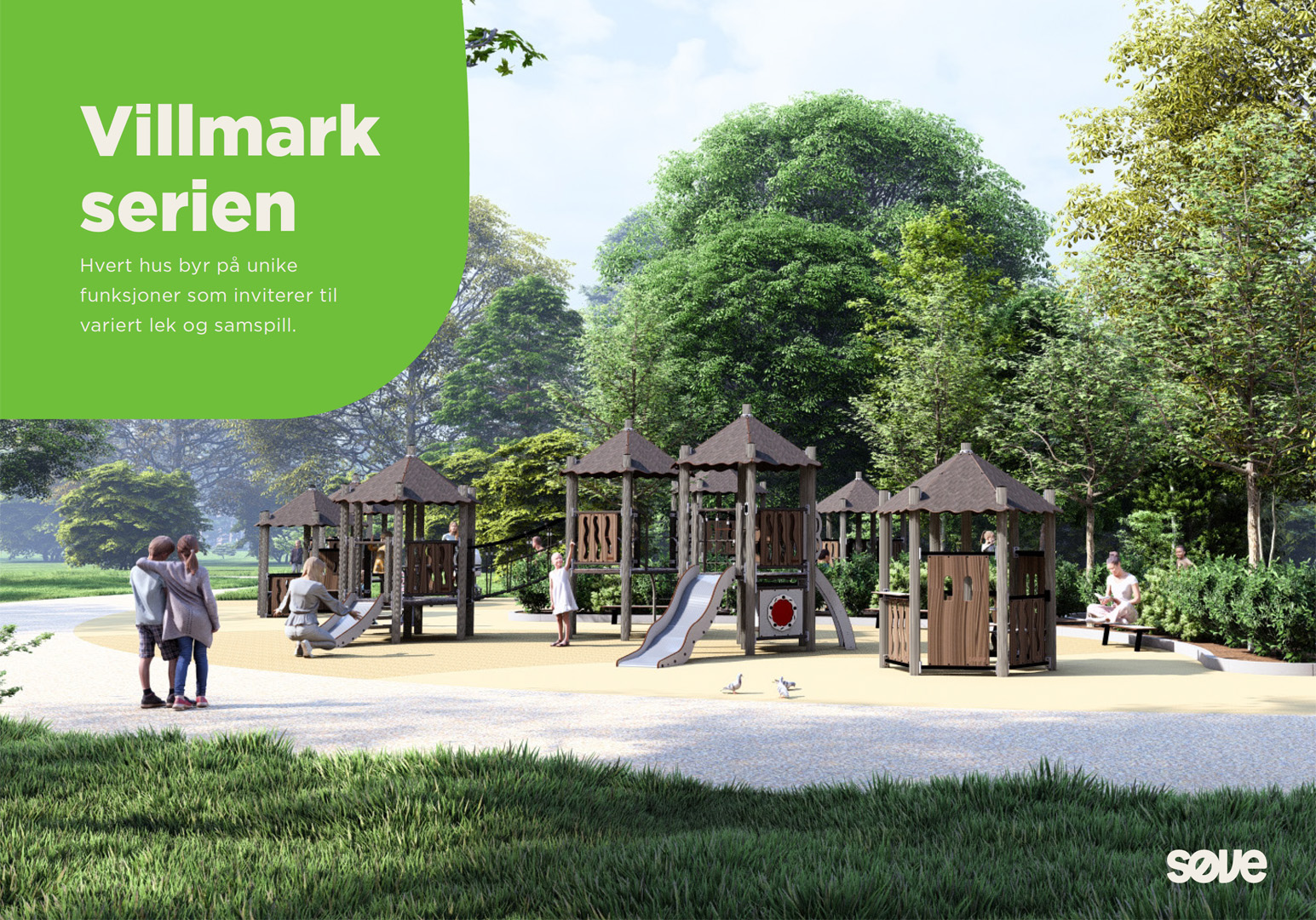 Hva med et stort og romslig lekehus eller et større og mer utfordrende leketårn med lekepaneler, sklier, trapper og hengebro for de litt eldre barna. De naturinspirerte fargene på lekeapparatene gir lekeplassen et rolig, avslappende og naturlig utseende. Stolpene i Villmarkserien er i resirkulert aluminium, lakkert i RAL 7039, og vegger har HPL plater i trestruktur.